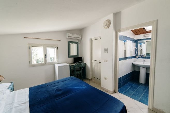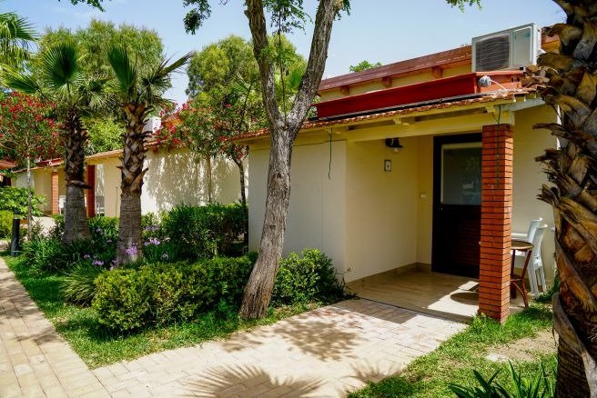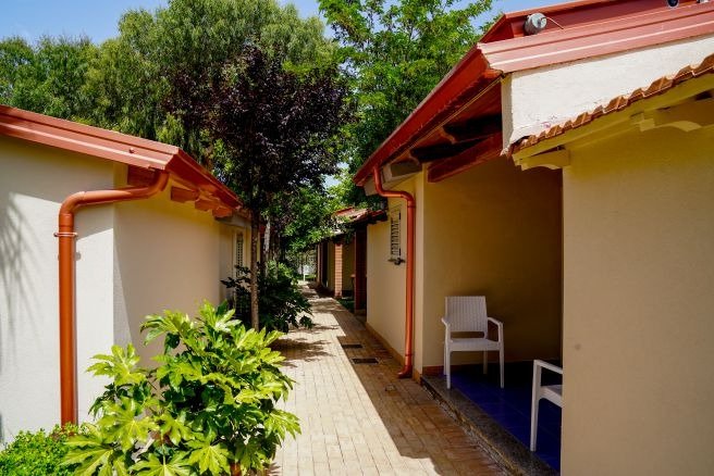 Bungalow: abitazioni monolocali indipendenti in muratura, arredati in midollino, semplici e funzionali, tutti dotati di servizi privati con doccia, asciugacapelli e linea di cortesia, tv, aria condizionata, frigorifero e patio esterno arredato con tavolo e sedie. Si dividono in: Monolocali 2 posti letto / Monolocali 3 posti letto (matrimoniale + lettino) / Monolocali 3 /4 posti letto (matrimoniale + letto a castello).