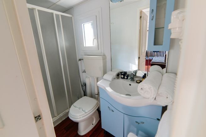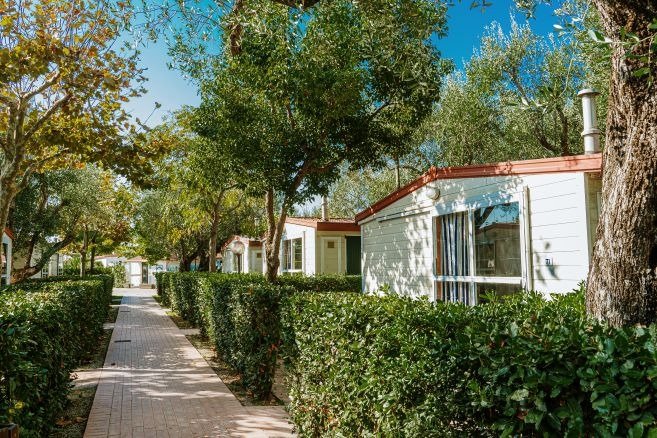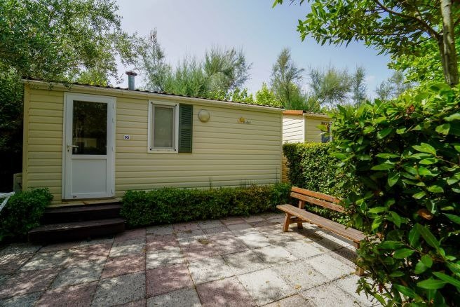 Cottage: abitazioni indipendenti ecosostenibili, rialzate, arredate in stile marinaro, tutte dotate di servizi privati con doccia e wc con doccetta (senza bidet), asciugacapelli e linea di cortesia, tv, aria condizionata e frigorifero. Si dividono in : Cottage (mobilhome) 3 posti letto (camera matrimoniale + divano letto nel soggiorno + wc), cottage 3 / 4 posti letto (camera matrimoniale + camera doppia + soggiorno + wc). Tutti i cottage e tutti i bungalow hanno un patio antistante.